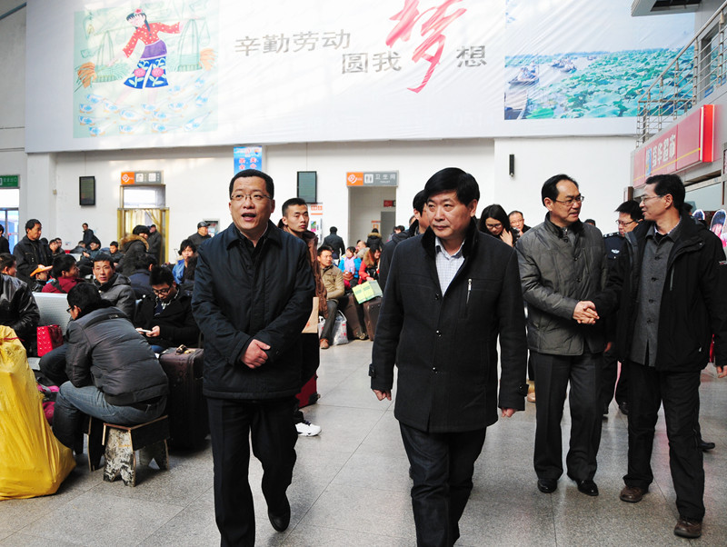 春節(jié)將至,為確保生產(chǎn)安全,讓群眾過一個歡樂祥和的節(jié)日,1月26日下午,市委常委、常務(wù)副市長丁純帶領(lǐng)市公安局、安監(jiān)局等相關(guān)部門負責人,來到揚州站檢查春運情況,向奮戰(zhàn)在春運一線的干部職工表示慰問。