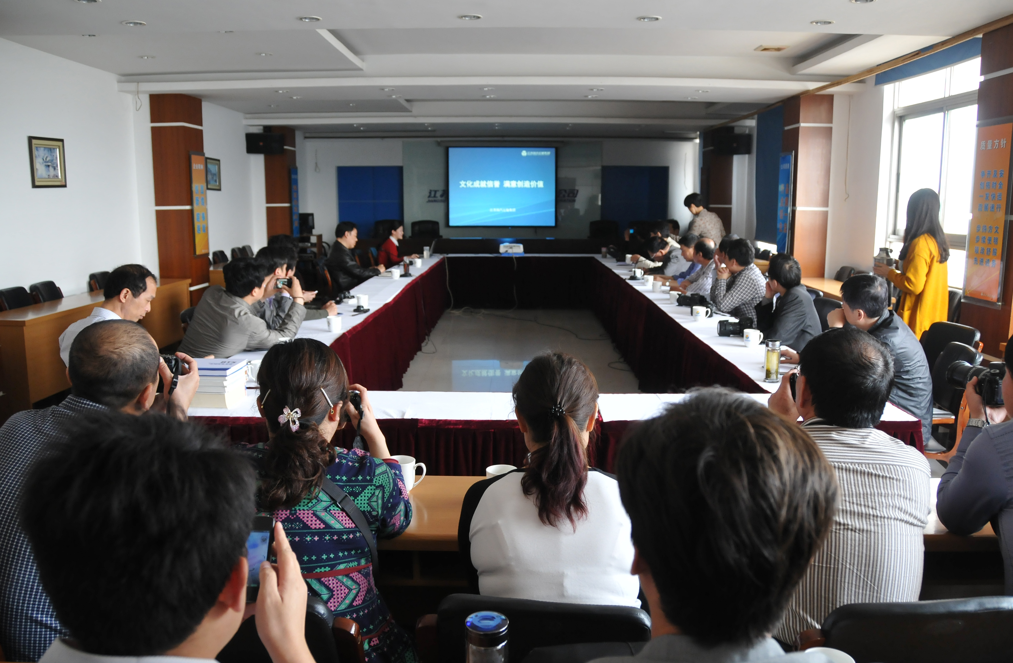 總經(jīng)理、黨委書記吳忠俊對(duì)鄭州鐵路局考察團(tuán)客人的到來表示熱烈的歡迎,并陪同觀看了公司女子打擊樂隊(duì)《迎賓鼓樂》視頻和企業(yè)宣傳片,介紹了我司企業(yè)文化建設(shè)的具體做法和取得的成績,并與來賓進(jìn)行了深入的探討交流。會(huì)后,考察團(tuán)一行參觀了揚(yáng)州汽車站的班組文化建設(shè),考察團(tuán)對(duì)揚(yáng)州汽車站講解員的細(xì)心講解和各具特色的班組文化建設(shè)留下了深刻印象。姚書記對(duì)我司在企業(yè)文化建設(shè)方面累積的豐富經(jīng)驗(yàn)和取得的突出成績感到由衷的欽佩,他表示此次揚(yáng)汽之行收獲頗多,開闊了視野,增長了知識(shí),為鄭州鐵路企業(yè)文化建設(shè)提供了值得借鑒的經(jīng)驗(yàn),并希望雙方能在今后的工作中互相學(xué)習(xí)、加強(qiáng)交流,以促進(jìn)共同發(fā)展。