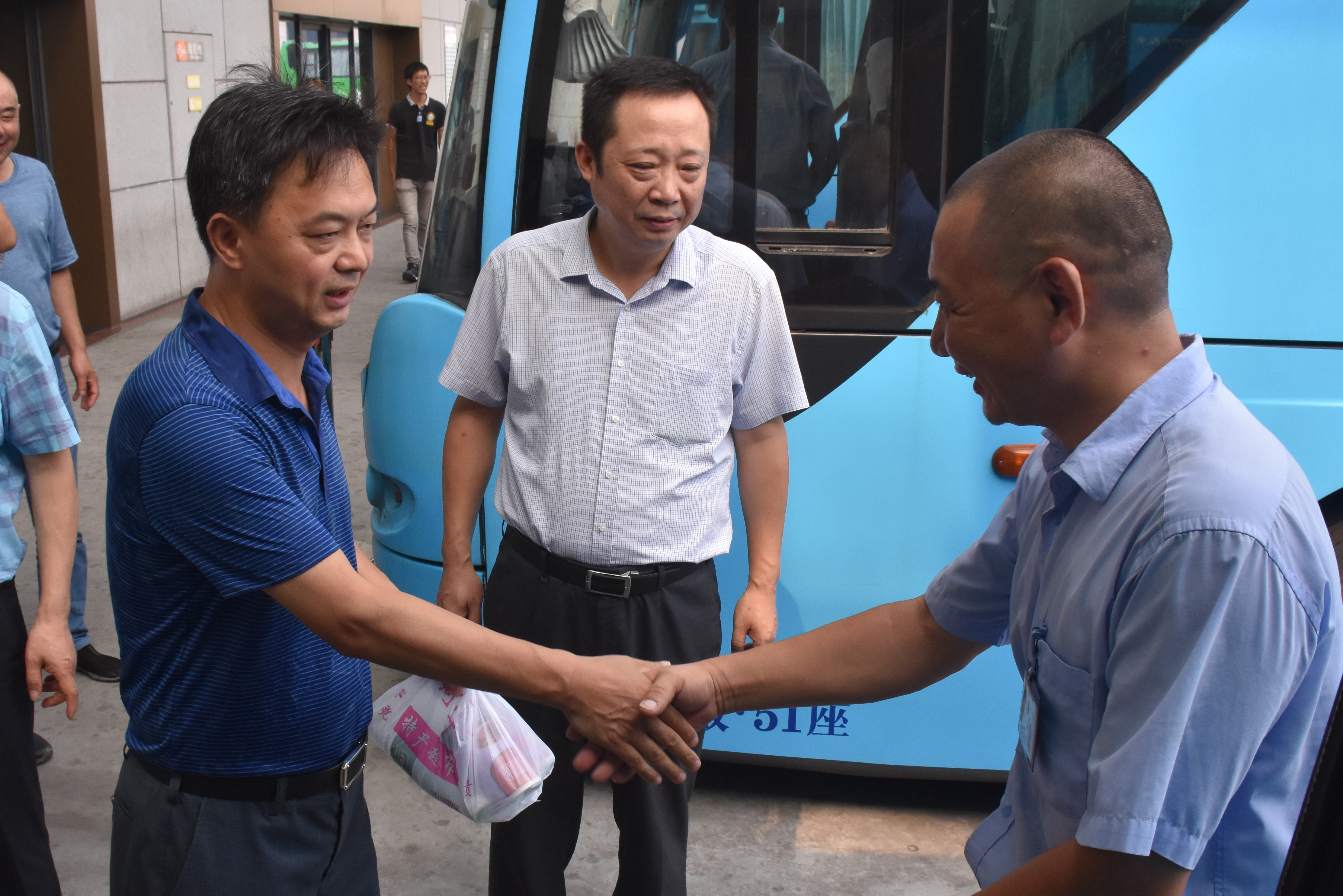 凌董事長一行對西部樞紐揚(yáng)州站的候車廳、安檢口、換乘中心等部位進(jìn)行巡視。發(fā)車場上,午后的驕陽下,一輛輛大客車整裝待發(fā),發(fā)動機(jī)艙里涌出陣陣熱浪,凌董事長逐一給駕駛員送上防暑降溫用品,并一再叮囑要注意夏季“三防”,確保行車安全。隨后,董事長一行來到西部樞紐公交場站進(jìn)行慰問。