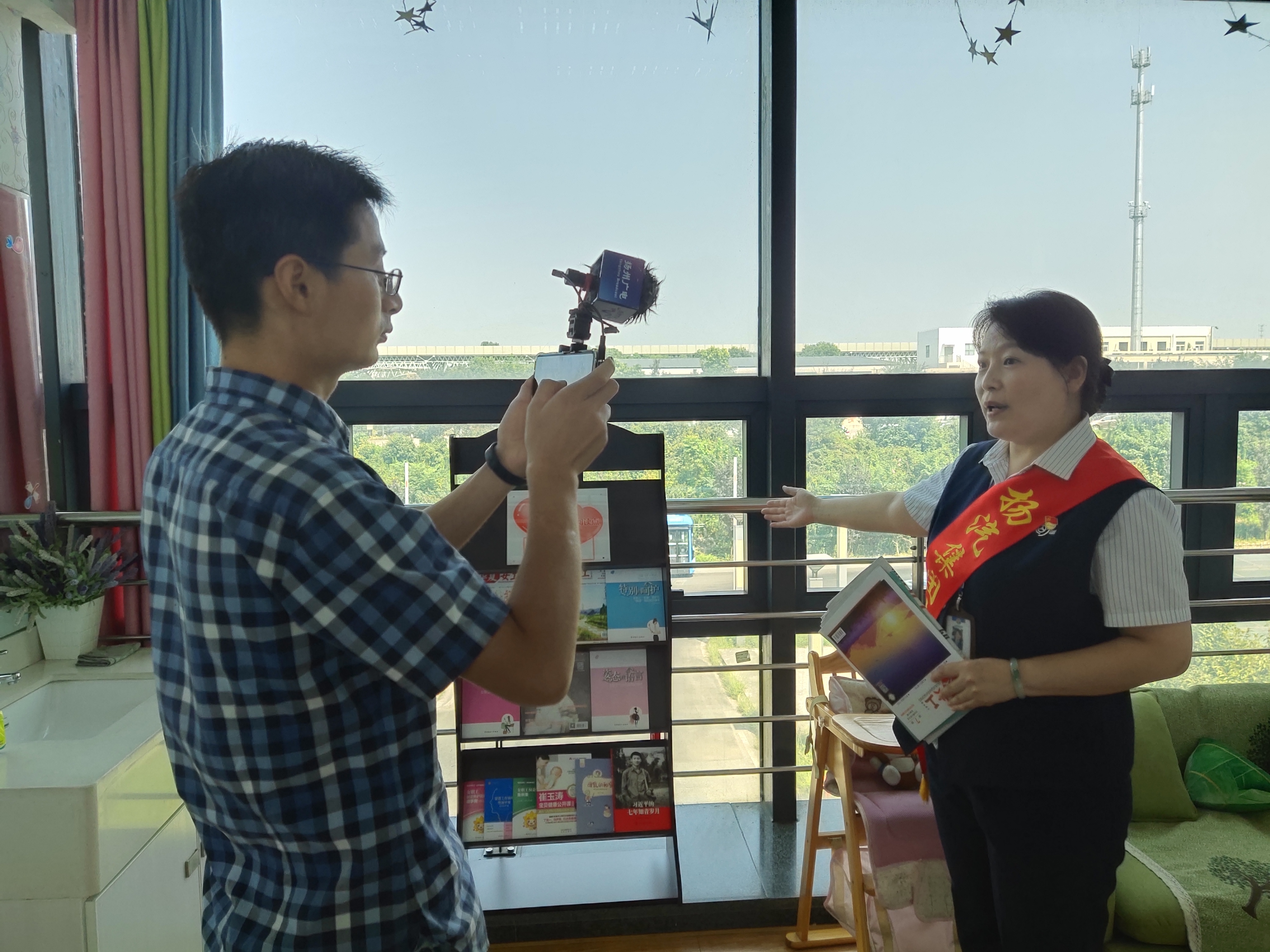 此次采訪主要以文明驛站——愛心母嬰室為主題,采訪過程中揚州站負責母嬰室服務(wù)的班長尹海霞對母嬰室的功能及服務(wù)進行了詳細的解說。