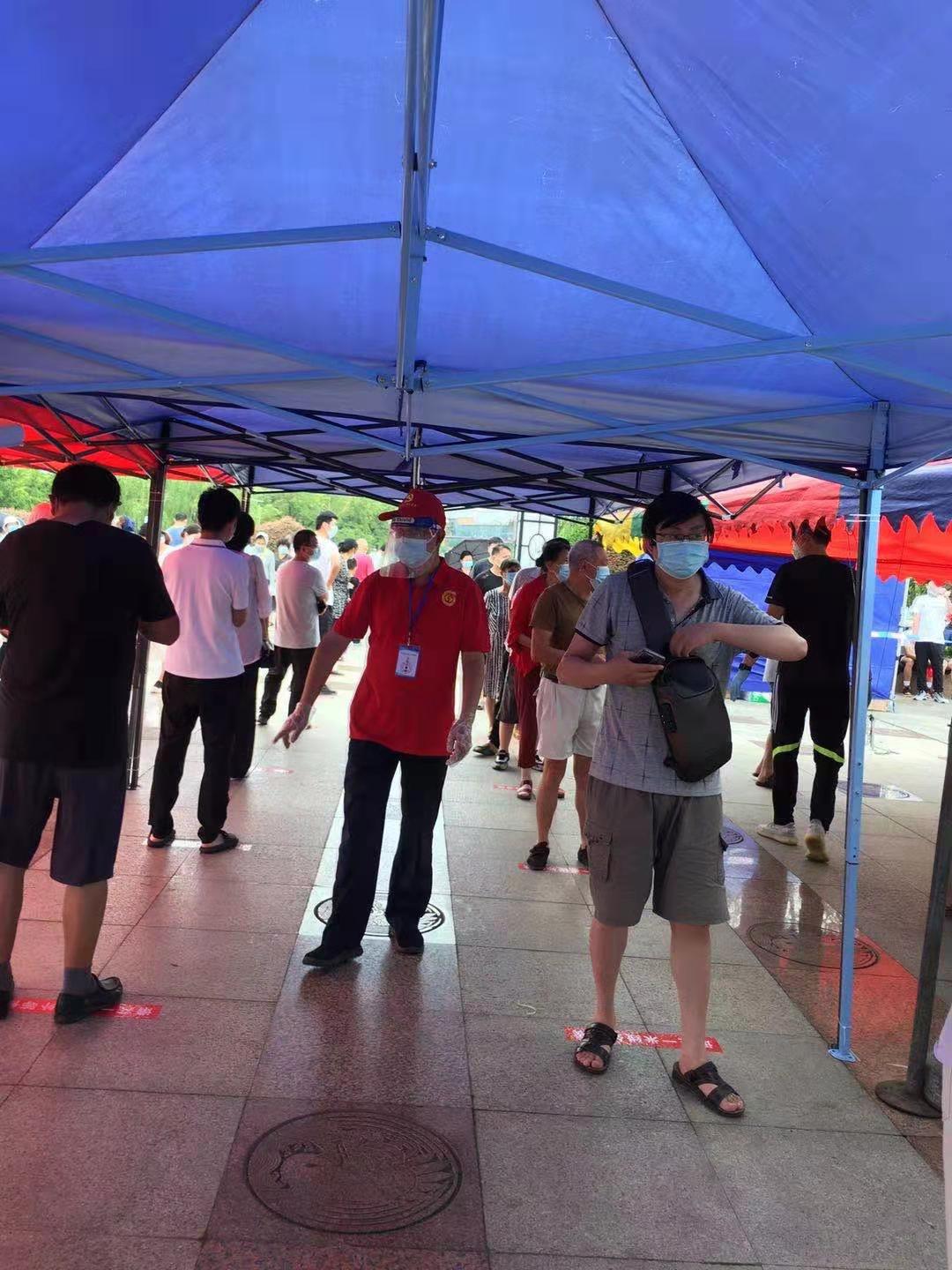 市區(qū)文峰街道東花園農(nóng)貿(mào)市場周圍老舊小區(qū)居住人員復(fù)雜,封控管理任務(wù)繁重,急需一批志愿者,揚汽出租“1035愛心車隊”黨員孫和鳳主動報名加入疫情防控志愿者隊伍。她前往東花園社區(qū)監(jiān)測點開展志愿服務(wù),通知居民分批次按秩序下樓開展核酸檢測,協(xié)助工作人員維護現(xiàn)場秩序,做好信息登記,查驗健康碼等工作。