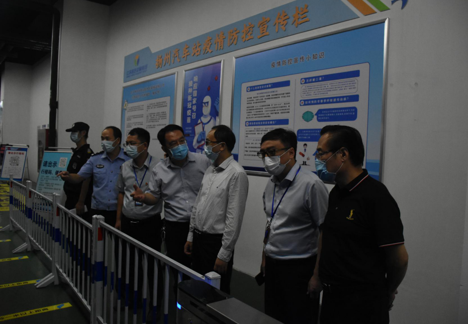 為全面落實(shí)市委、市政府疫情防控決策部署要求,9月17日下午,市紀(jì)委副書(shū)記徐宏宇來(lái)到揚(yáng)汽集團(tuán)西部客運(yùn)樞紐,檢查督導(dǎo)疫情防控專項(xiàng)工作。交通產(chǎn)業(yè)集團(tuán)副總經(jīng)理、揚(yáng)汽集團(tuán)黨委書(shū)記、董事長(zhǎng)龔宇峰,交通產(chǎn)業(yè)集團(tuán)紀(jì)委書(shū)記、監(jiān)察專員方震及相關(guān)部門(mén)負(fù)責(zé)人陪同檢查。