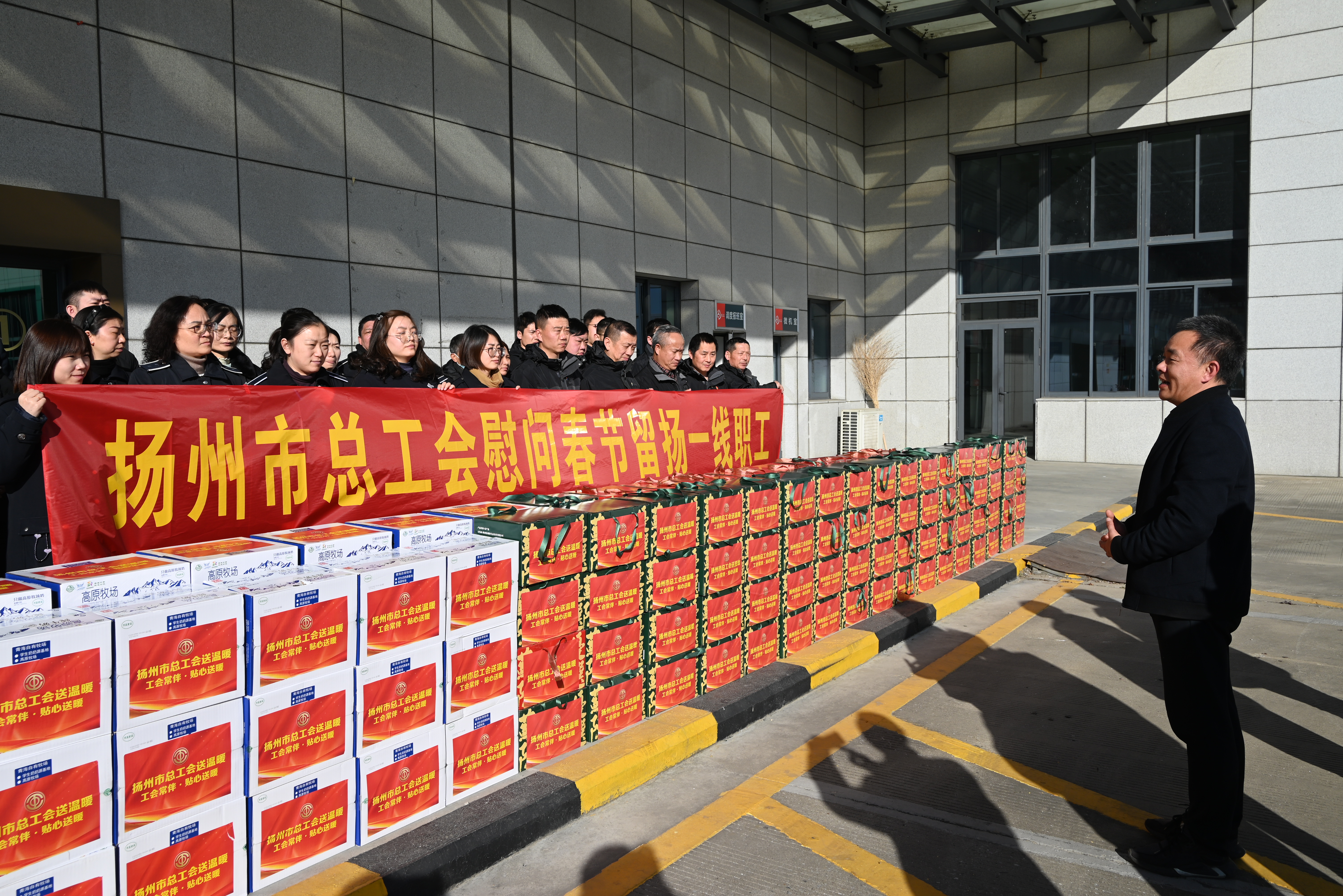 新春佳節(jié)臨近,1月15日,市總工會副主席楊浩一行赴西部客運樞紐,慰問揚汽集團春節(jié)留揚一線職工。市建設產(chǎn)業(yè)工會主任范華,揚汽集團黨委書記、董事長萬雷,黨委副書記、紀委書記、工會主席陳家宏及相關部門負責人陪同慰問。