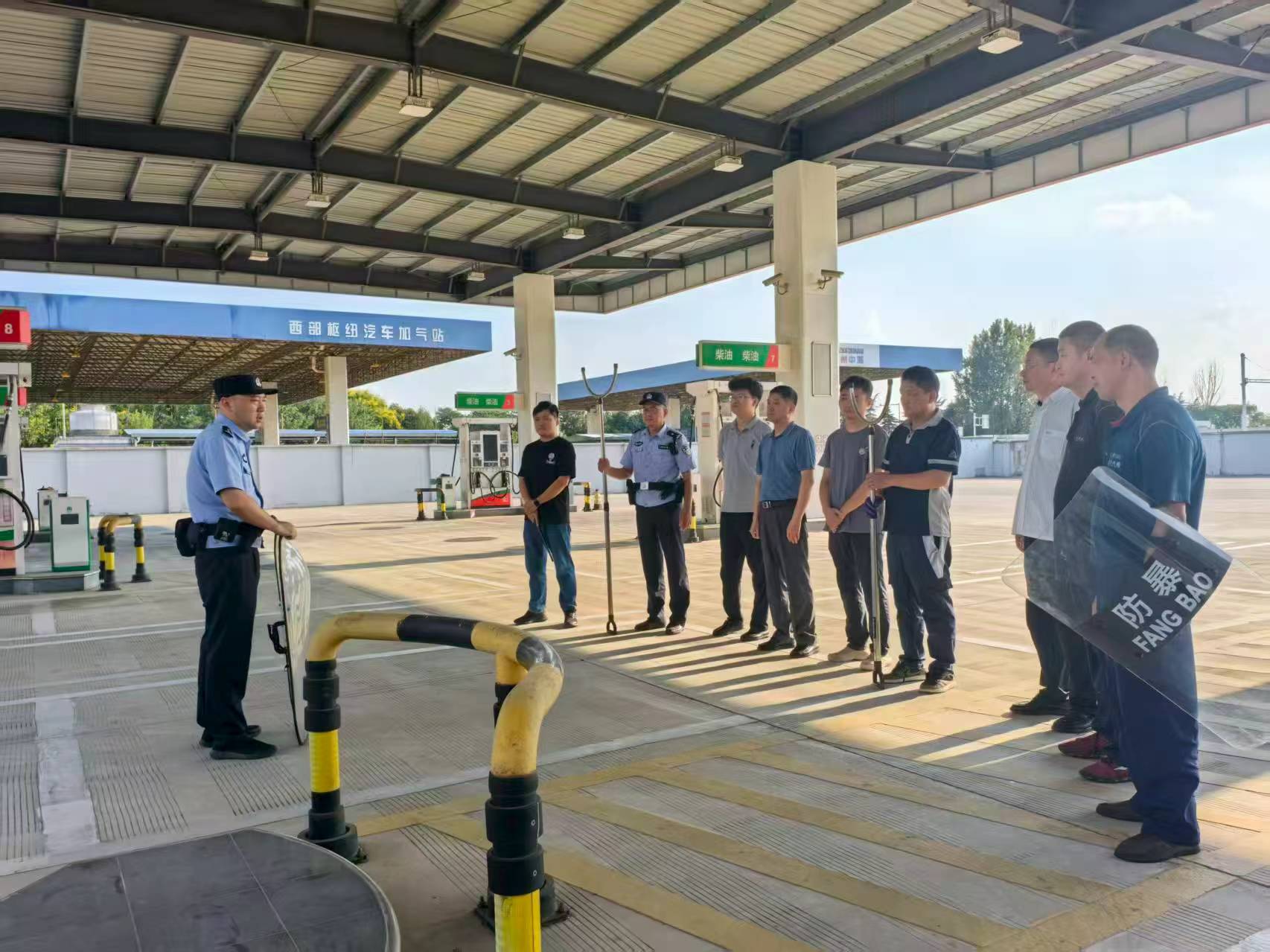 演練前期,雙方周密部署,制定了詳實(shí)的演練方案,明確了崗位職責(zé)與處置流程。車(chē)站派出所民警結(jié)合加油站實(shí)際,對(duì)參演人員開(kāi)展了反恐知識(shí)及防護(hù)技能的系統(tǒng)培訓(xùn)。演練模擬“恐怖分子”強(qiáng)行闖入加油站的突發(fā)場(chǎng)景,F(xiàn)場(chǎng)配備盾牌、防刺背心等專業(yè)裝備,營(yíng)造出高度緊張的實(shí)戰(zhàn)氛圍,有效檢驗(yàn)了人員的應(yīng)急反應(yīng)與協(xié)同處置能力。